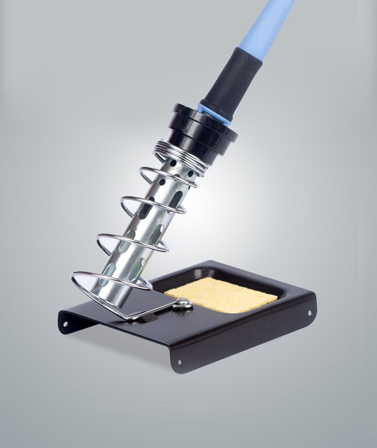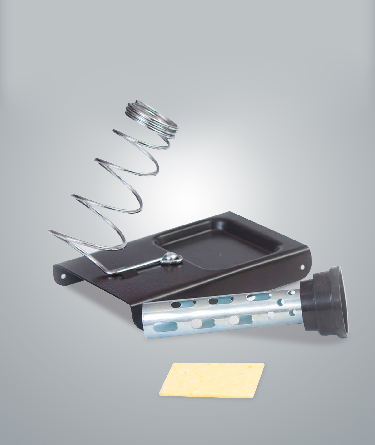 El soporte para sostener el cautín para obtener mayor comodidad y evitar posibles accidentes durante el proceso de soldadura.+