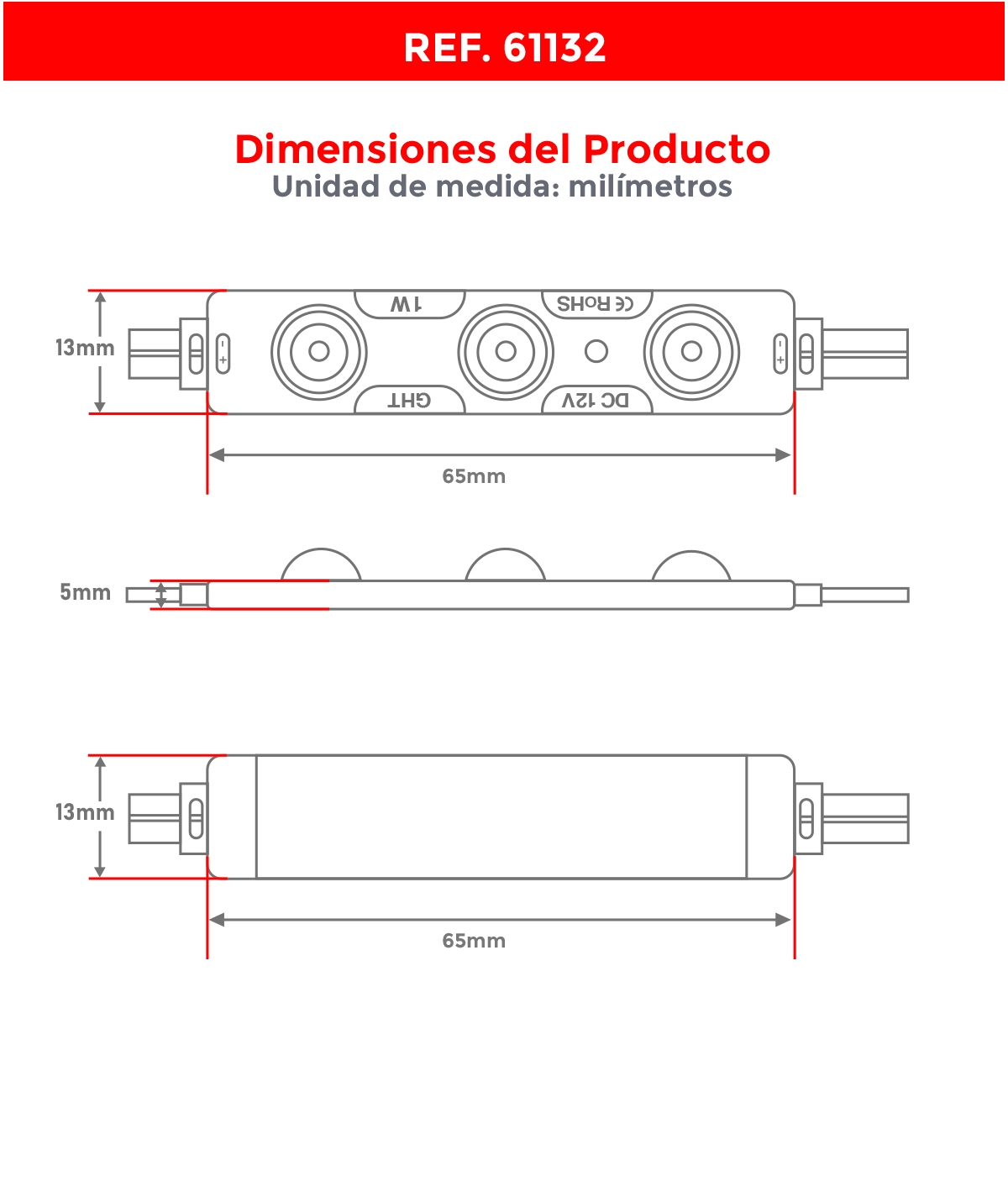 | Potencia por módulo | 1W |